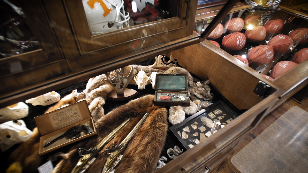 Amongst the sports memorabilia, Jim also has a collection of antique guns, books, and other items he wants to keep safe from his children and other curious hands.